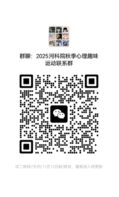 即日起至2025年11月7日中午12:00,请各院负责人扫描下方二维码进入微信群,比赛的相关通知、细则及后续注意事项将在微信群里发送。其他未尽事宜,请与活动承办单位联系。承办单位办公室设在河南科技学院计算机科学与技术学院团委(东区弘德楼408办公室),联系人:李听 张敬敬,办公电话:0373-3040068。