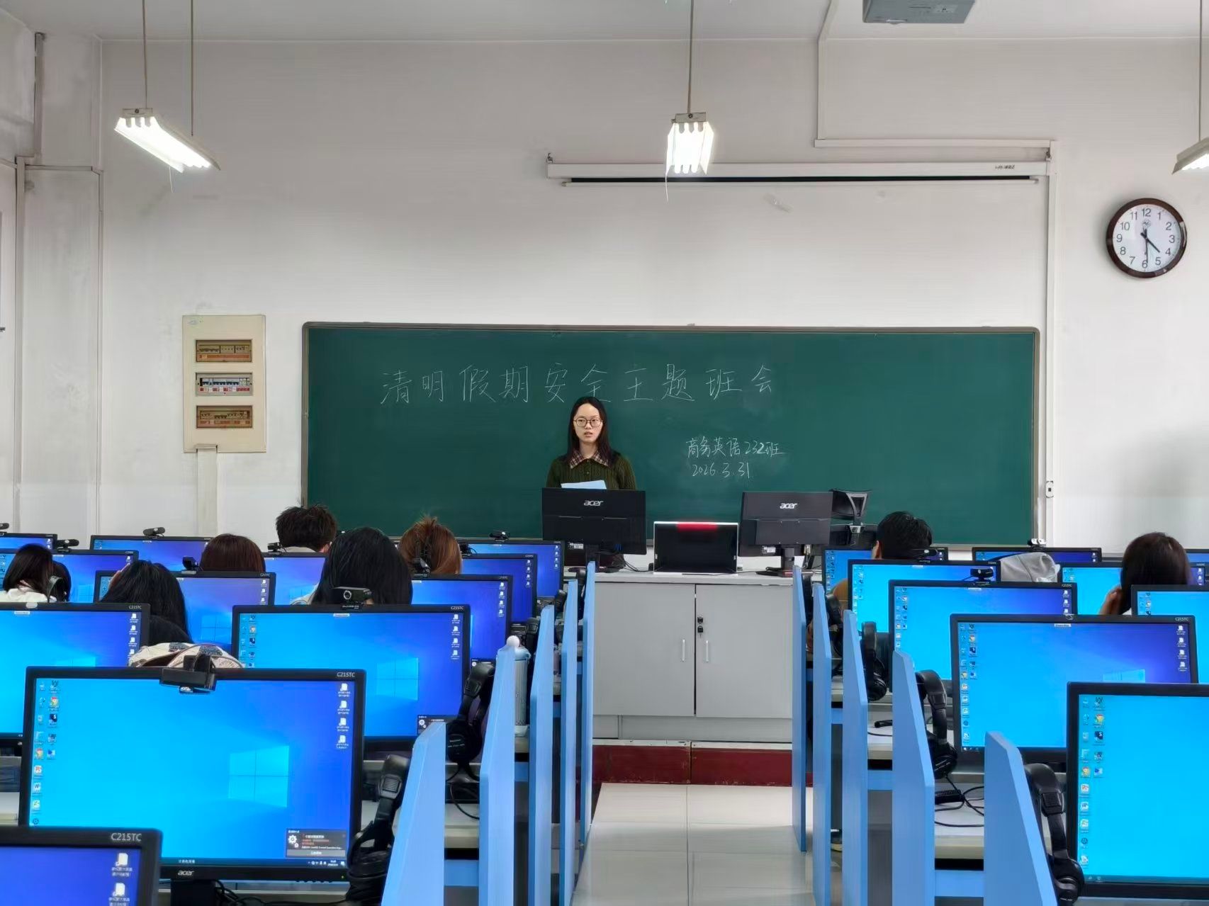 班会上,各班组织班级同学认真学习并签订了《外国语学院2026年清明假期学生安全承诺书》。