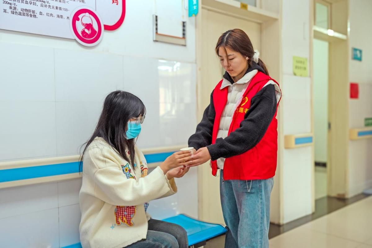活动当天上午,志愿者们早早抵达校医院体检中心,身着统一志愿马甲,手持指示牌,分组驻守在各诊室门口和关键通道,引导参加春季传染病筛查的师生有序排队、规范流程。在入口处,志愿者主动为同学们发放医用口罩,并提醒他们做好个人防护,以切实筑牢校园传染病防控屏障。针对部分同学因空腹体检可能出现的不适情况,志愿者们在服务台贴心准备了葡萄糖水和一次性水杯,及时为低血糖同学提供帮助,保障筛查工作安全顺利进行。