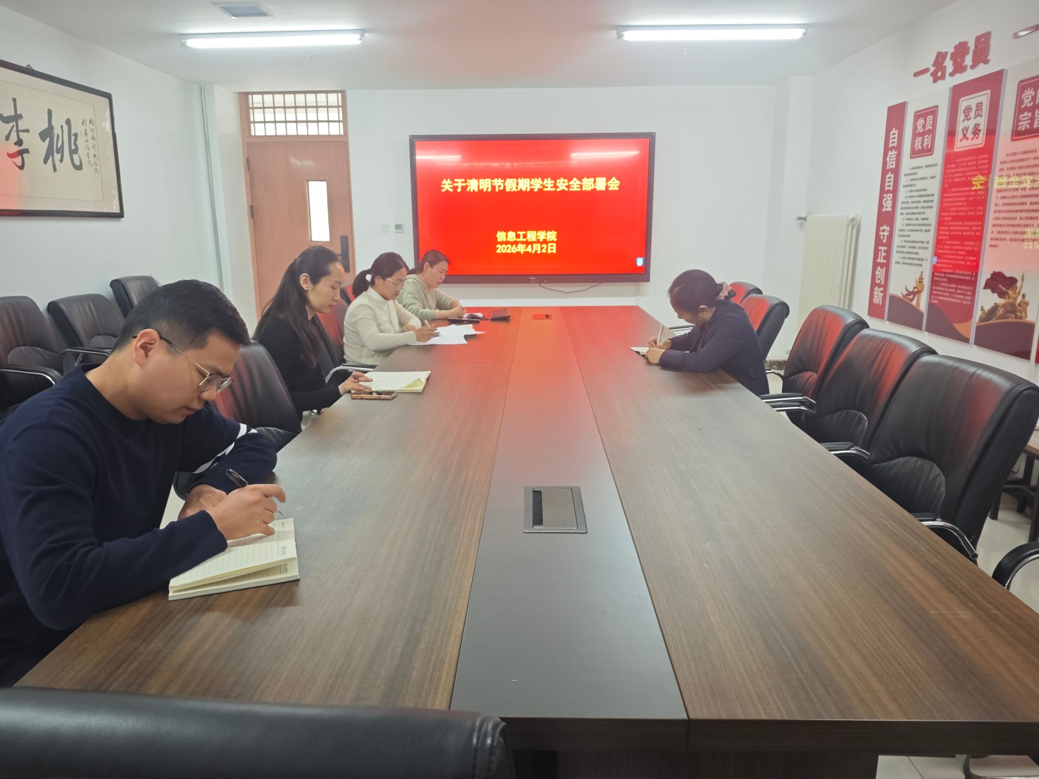 为切实做好清明假期学生安全教育与管理工作,4月2日,信息工程学院统筹谋划、分层推进,于当日先后召开学工队伍清明假期安全部署会与学生干部安全教育专题会,全面织密清明假期学生安全防护网。