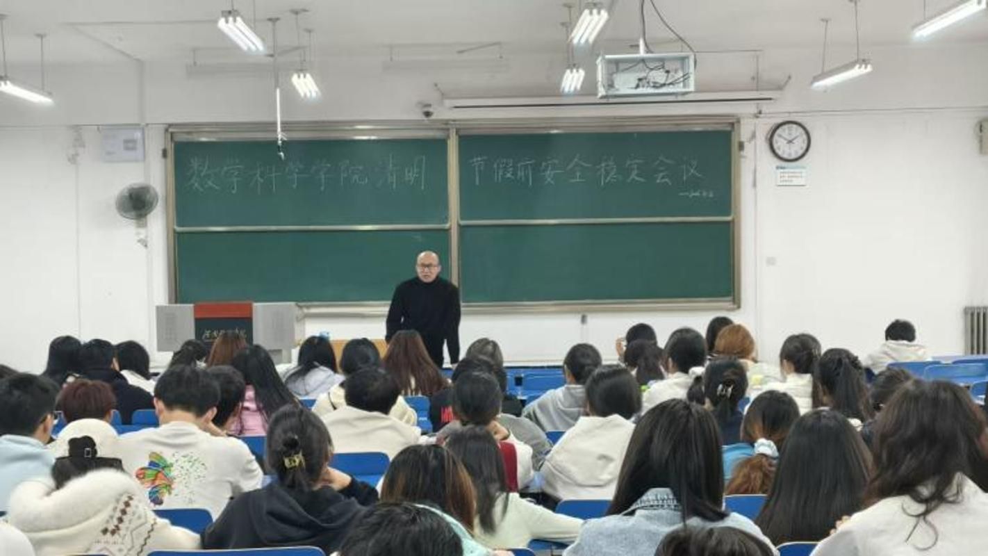 4月2日至3日,数学科学学院陆续召开清明节假期安全教育大会,各年级辅导员、及全体学生参加此次会议,会议由各年级辅导员主持。
