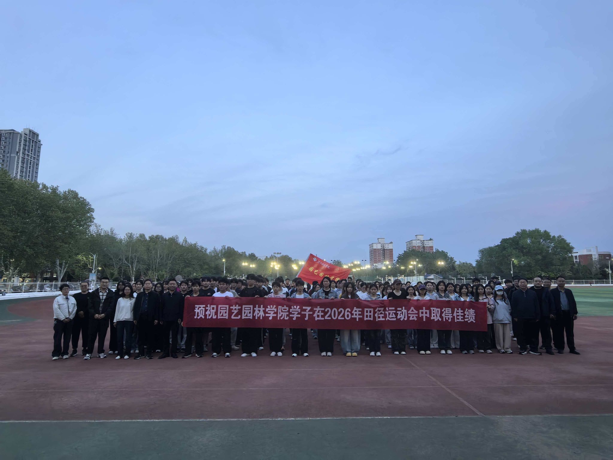 为进一步做好校运动会参赛备战工作,切实筑牢赛事安全防线,激发学子拼搏斗志。4月10日,园艺园林学院全体领导班子、党政办公室主任及全体辅导员深入田径运动场,亲切看望慰问正在紧张备战的全体运动员。