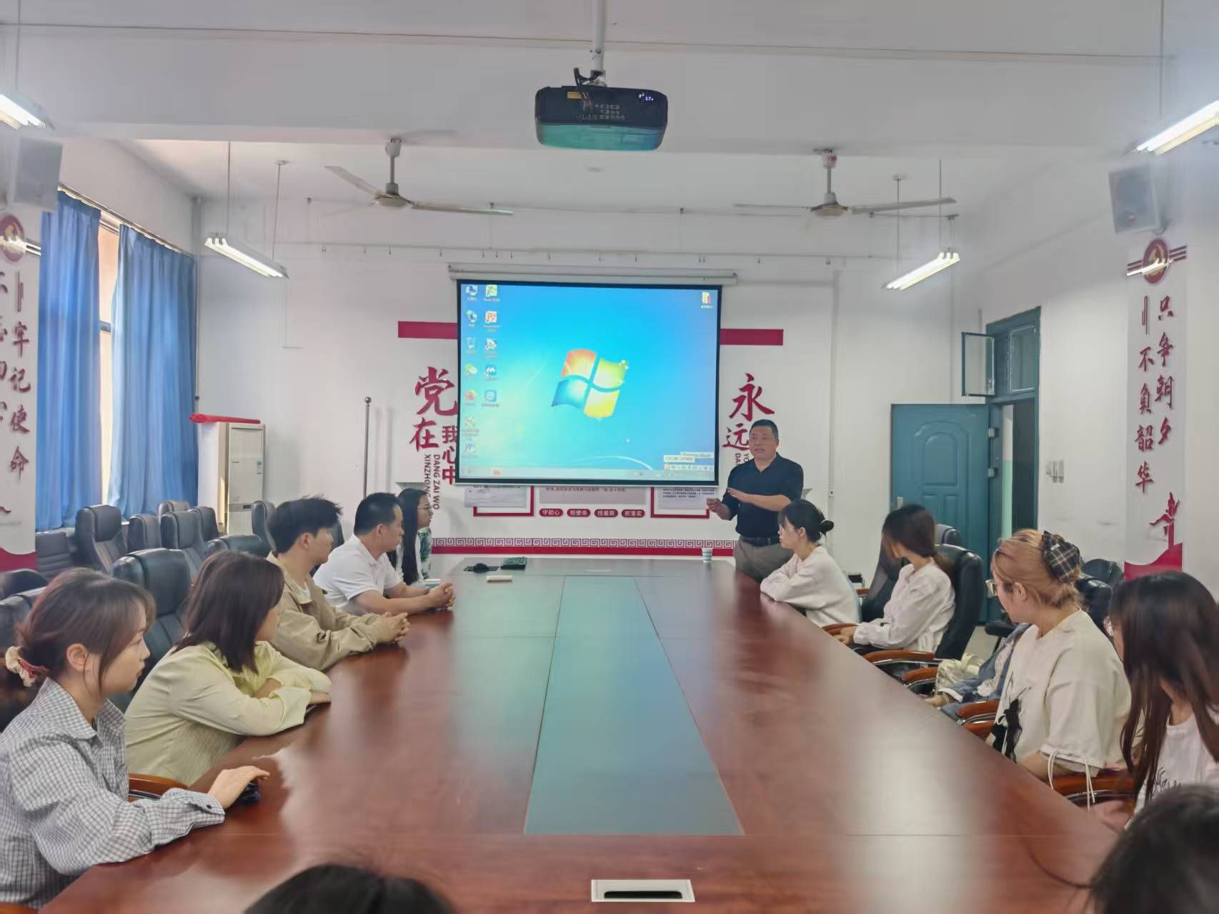 宣讲会上,东莞迪睿贸易有限公司负责人分别从公司理念、招聘岗位以及薪资待遇等进行了详细的介绍。随后,他结合个人的就业创业经历以及学院的专业特点围绕当前外语类毕业生就业的形势与困境、毕业生就业心态与职业规划建议、AI对就业的影响与应对策略、创业与职业发展存在的挑战等方面进行了交流,鼓励学生要结合个人实际情况,立足专业、主动出击,积极把握就业机遇,在实践中积累经验、实现成长。